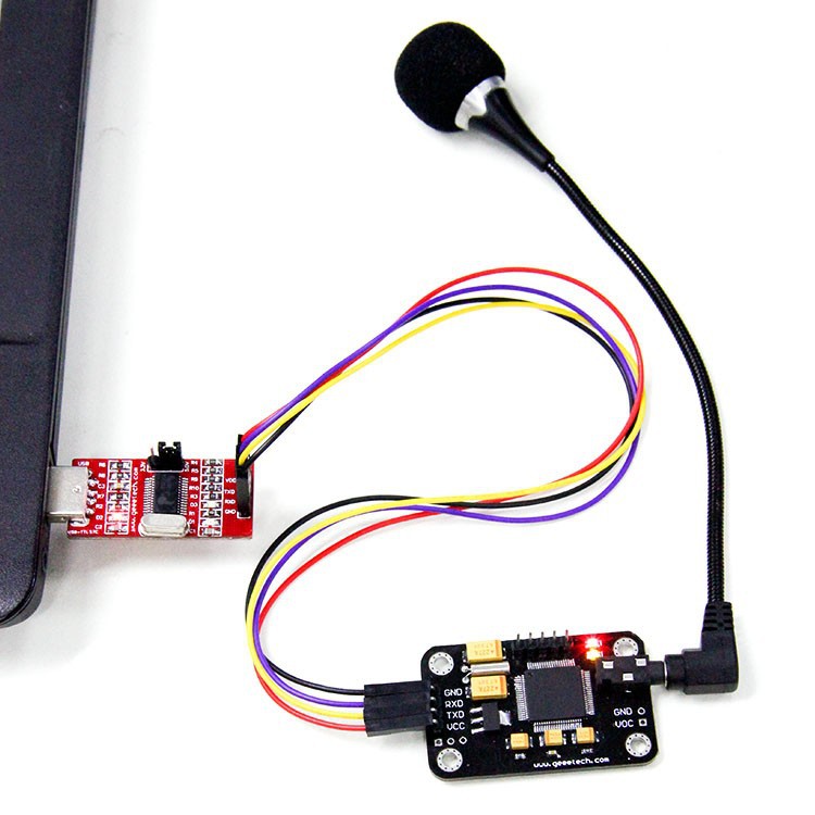 This Geeetech Voice Recognition Module could recognize your voice. It receives configuration commands or responds through serial port interface. With this module, we can control cars or other electrical devices by voice.